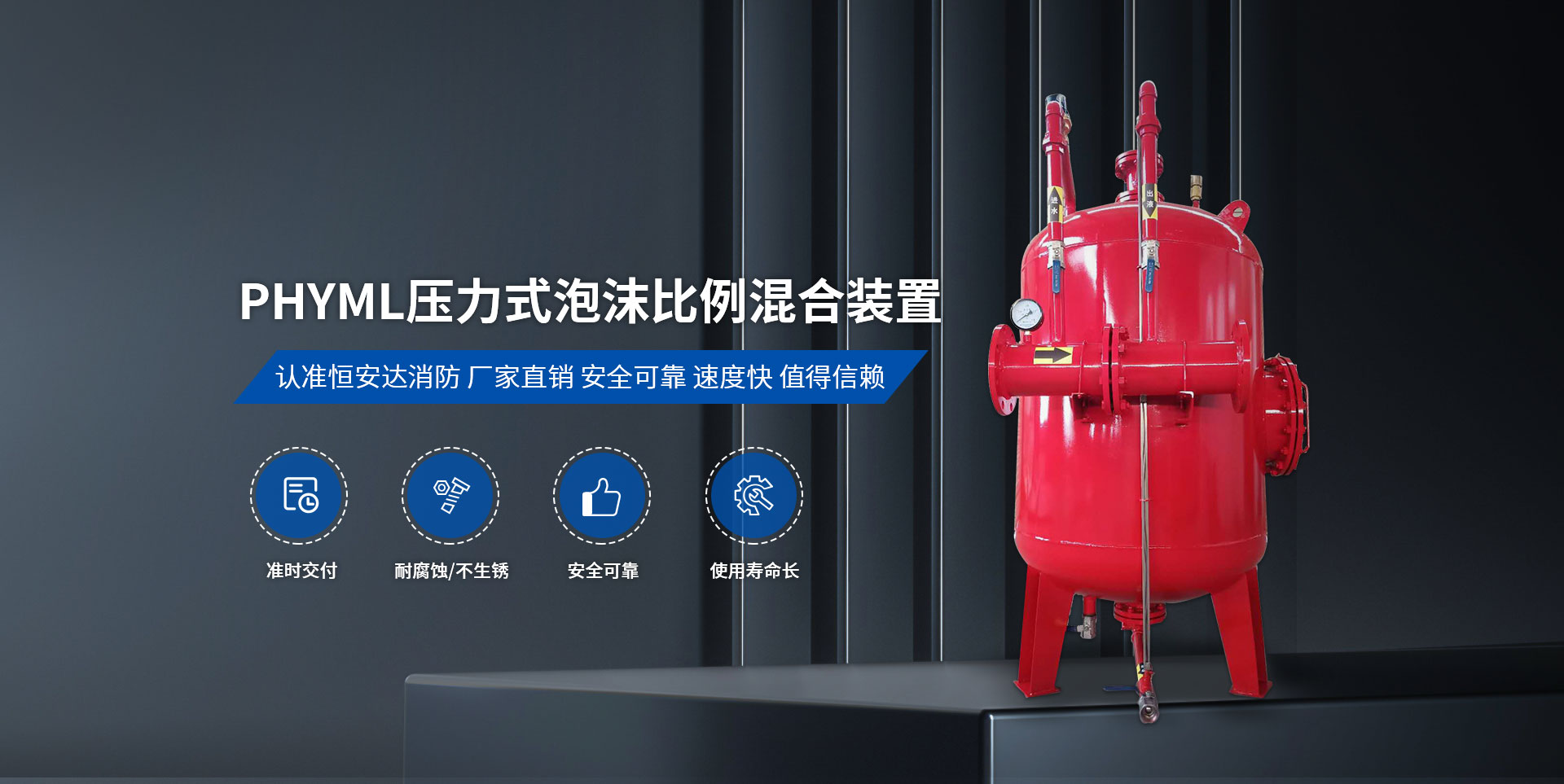 衛輝市恒安達消防設備有限公司,位于中國旅游城市比干故里——河南省衛輝市,公司位置緊鄰 107 國道、新濮公路、京珠高速,交通十分便利?! ∥夜局饕a品有:PHY/PHYM系列壓力式比例混合裝置、消防增壓穩壓給水設備、半固定式泡沫滅火裝置、PC 系列泡沫產生器、PS/PP/PL 系列消防炮、PSG 型泡沫消火栓箱、七氟丙烷滅火裝置、水成膜泡沫滅火劑、合成泡沫滅火劑、抗溶水成膜泡沫滅火劑、抗溶泡沫滅火劑、高倍泡沫滅火劑、A 類泡沫滅火劑、水系泡沫滅火劑、消防泵等。并承接老油罐帶油無火花開孔消防改造工程。以上設備,廣泛用于石油、化工、機場、碼頭、電廠、水上船舶、油庫等場地的泡沫滅火裝置?! ∥夜緭碛懈鞣N工藝先進的專用設備 60 余臺套,各種試驗檢測設備 10 余臺套,擁有數十名技師等人才。本公司所有產品均通過國家消防裝備質量監督檢驗中心的型式檢驗。我公司用科學的管理模式,雄厚的技術力量,嚴格的質量保障體系,確保產品質量穩定可靠,快捷和完善的售后服務,樹立我們的企業形象并為消防事業作出貢獻?! 」咀詣摻ㄒ詠?,始終堅持“規范質量行為,滿足顧客要求”的質量和經營方針,一直堅持“以質量為基礎,以信譽為生命、以公平的價格贏得客戶”的信念,竭誠為廣大客戶和社會各界提供產品和良好的服務。